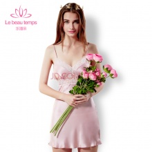 夏季性感吊带真丝睡裙100%桑蚕丝深V睡衣女士纯色蕾丝家居服女