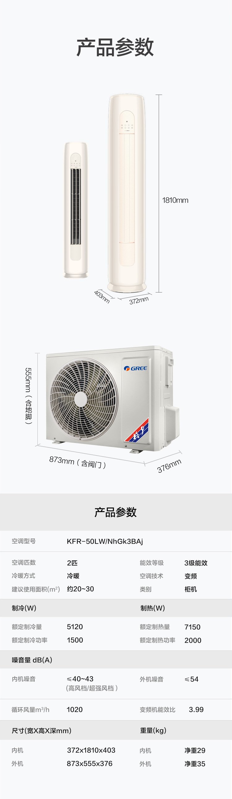 • 商品名称:二级大2P智能云定频冷暖柜机空调