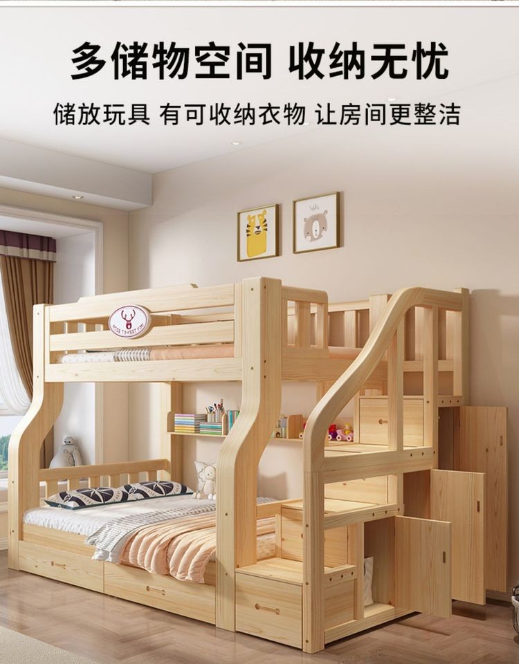• 商品名称:中派 进口芬兰松木家具实木儿童高低床子母床上下铺带梯柜双层床