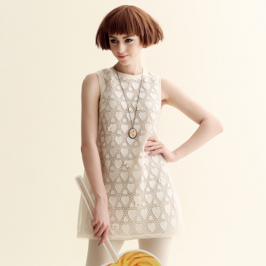 • 商品名称:夏装甜美爱心提花蕾丝连衣裙女 宽松欧根纱背心裙